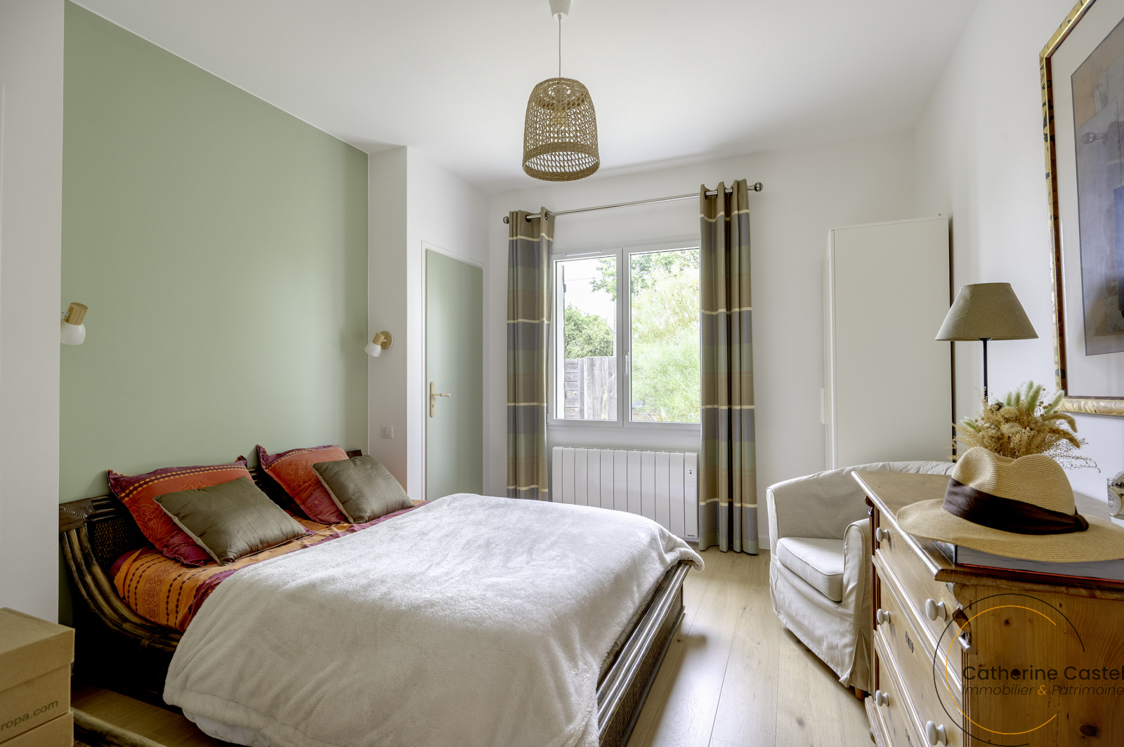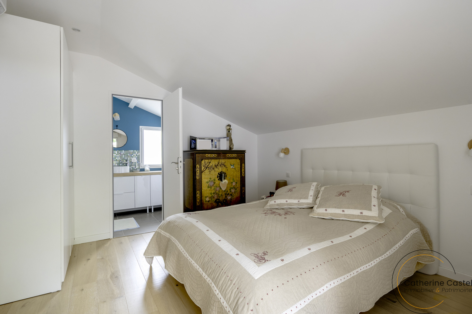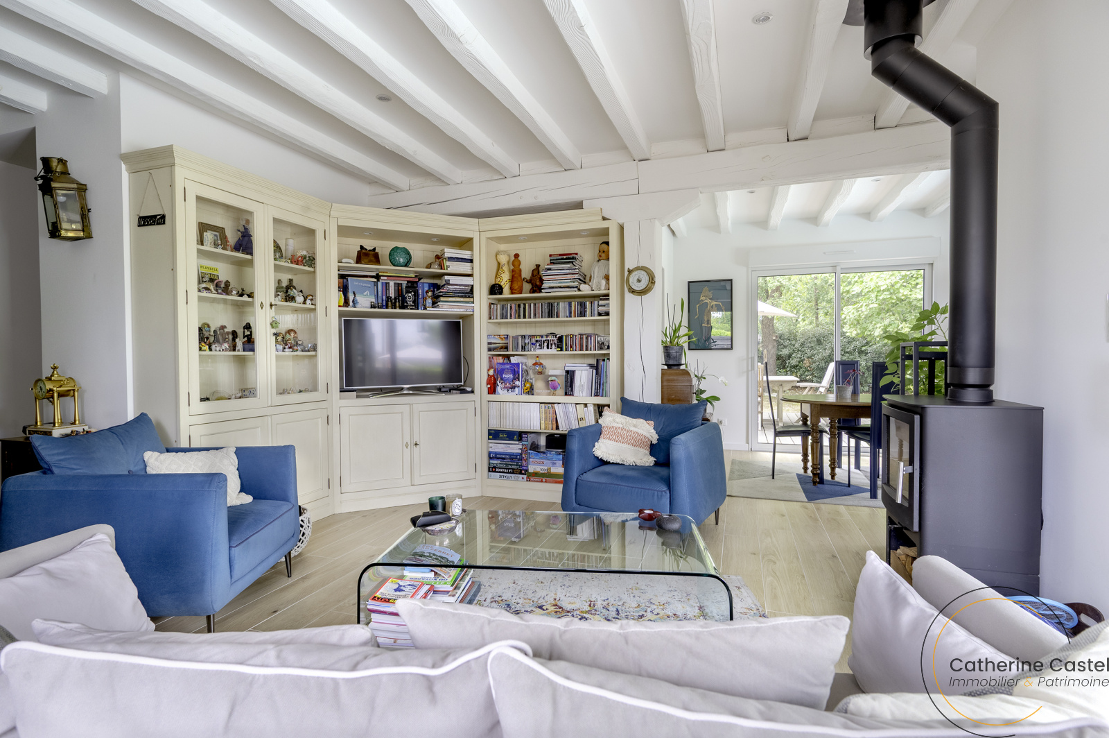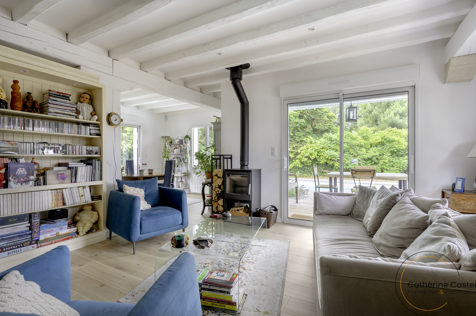 Totalement rénovée par une architecte en 2021, elle allie modernité et chaleur à travers l’utilisation et la mixité de matériaux de qualité. Vous apprécierez sa pièce de vie, baignée de lumière naturelle grâce à de grandes baies vitrées, donnant accès à différentes terrasses en bois ainsi qu’à la piscine chauffée réalisée en 2021.