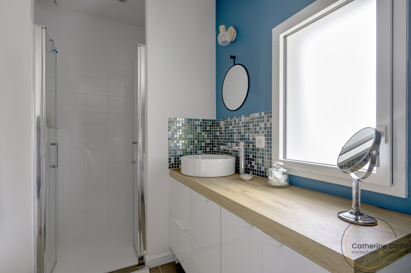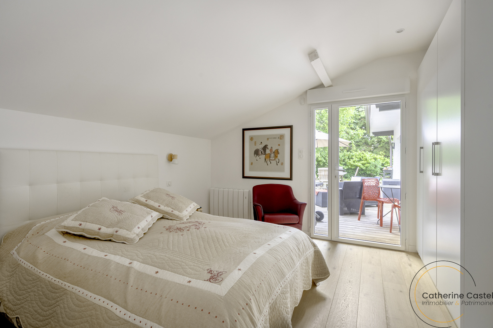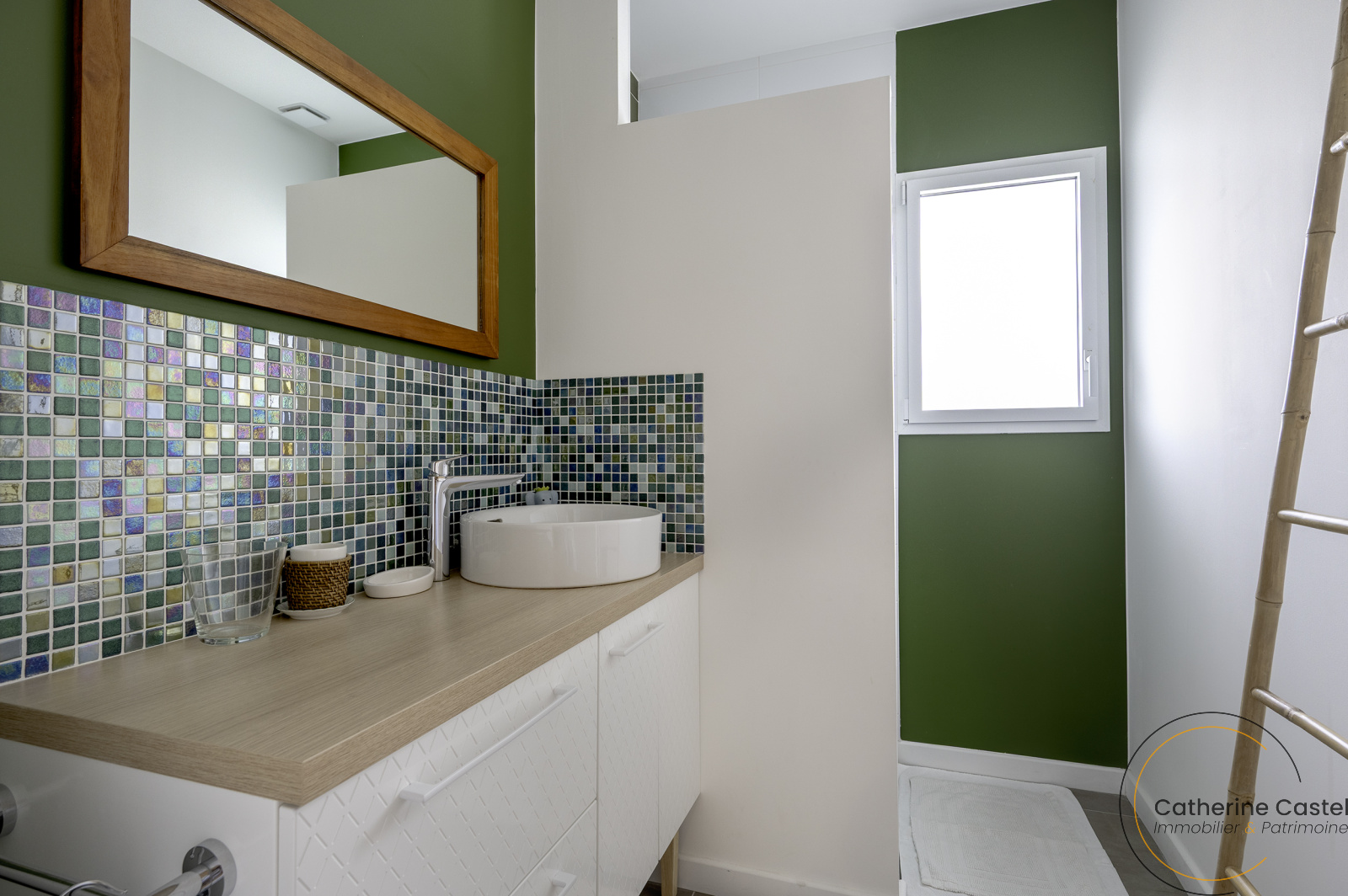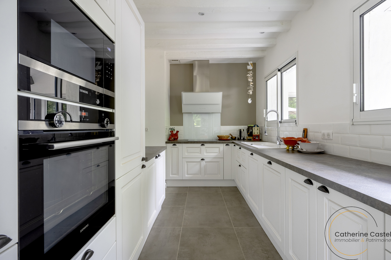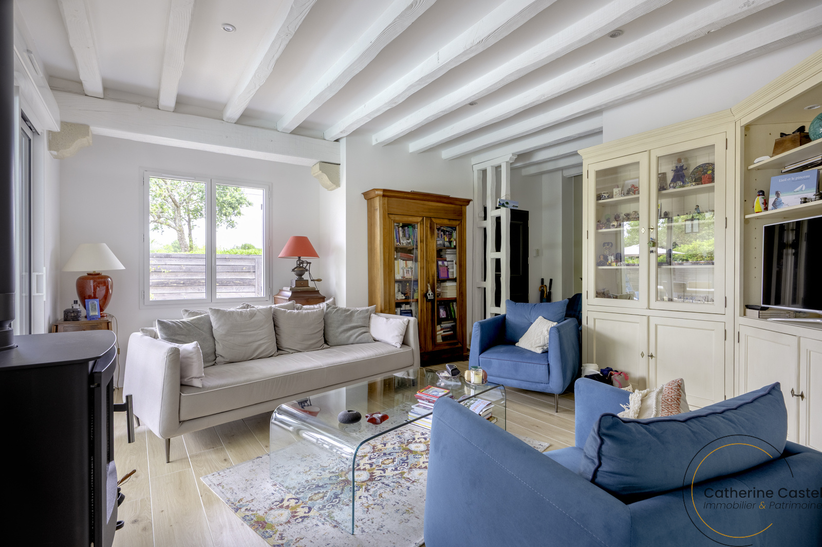 Totalement rénovée par une architecte en 2021, elle allie modernité et chaleur à travers l’utilisation et la mixité de matériaux de qualité. Vous apprécierez sa pièce de vie, baignée de lumière naturelle grâce à de grandes baies vitrées, donnant accès à différentes terrasses en bois ainsi qu’à la piscine chauffée réalisée en 2021.