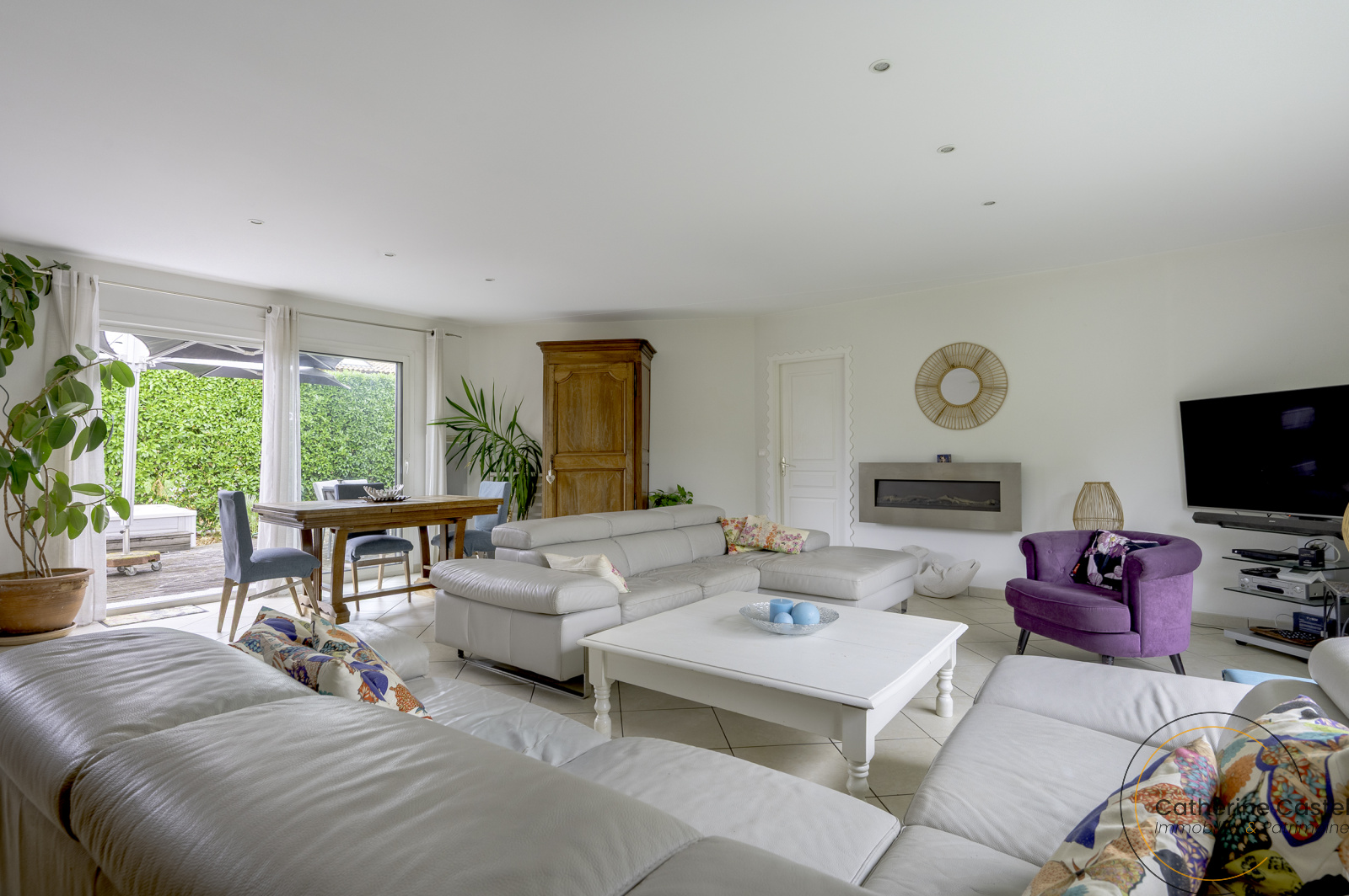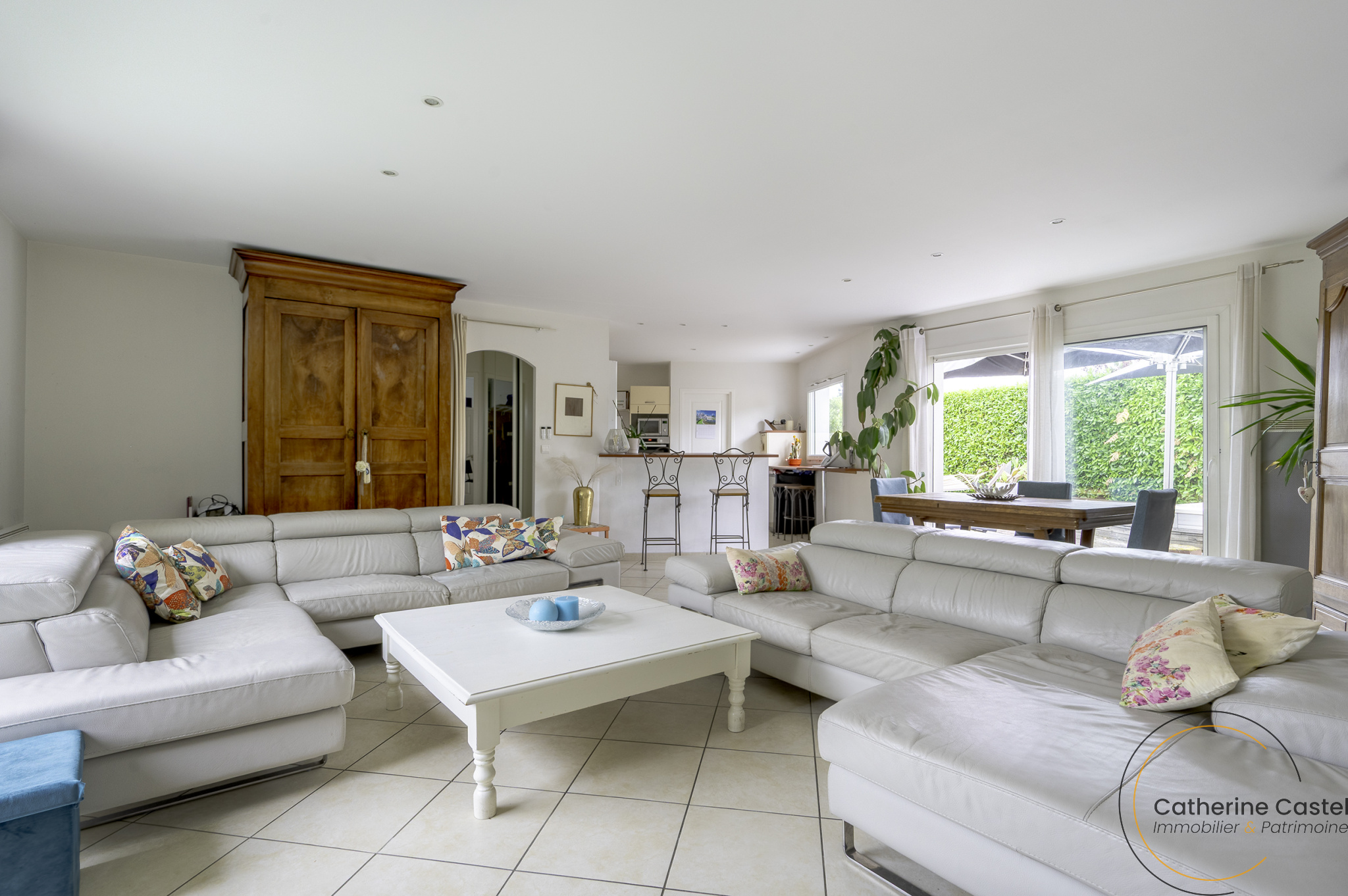 - Espace de vie lumineux : Salon-séjour de plus de 50 m2 avec grandes baies vitrées ouvrant sur plusieurs terrasses pour profiter du jardin à tout heure.